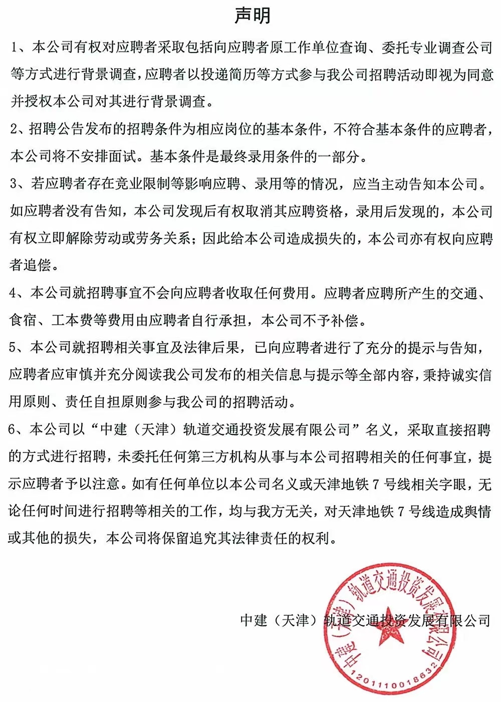 5.公司未授權(quán)委托任何招聘機構(gòu),不收取應(yīng)聘人員任何費用。