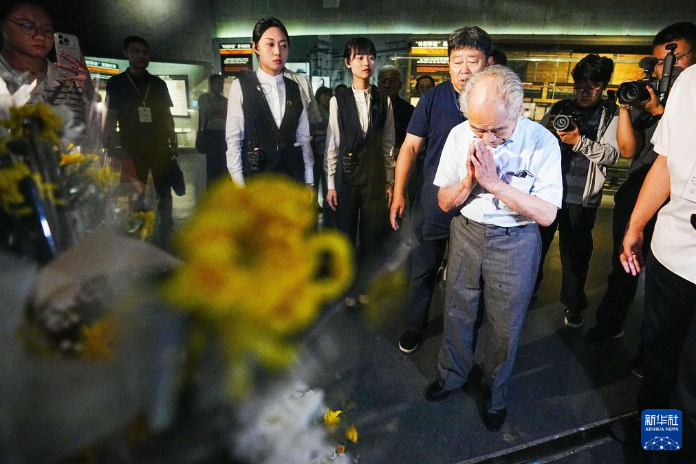 8月13日,清水英男在侵華日軍第七三一部隊(duì)罪證陳列館內(nèi)的殉難者名單前祈禱。