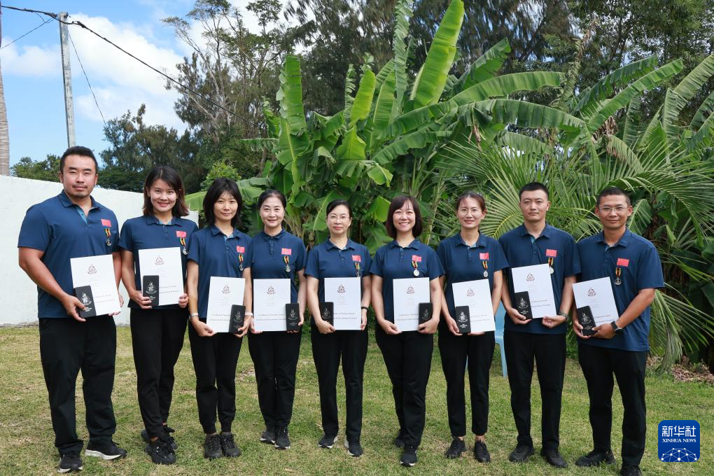 7月30日,在瓦努阿圖首都維拉港,中國(guó)援瓦醫(yī)療隊(duì)隊(duì)員手持證書(shū)合影。